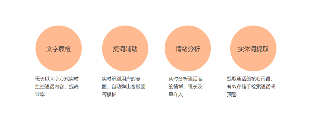 通过ASR语音识别技术,用户的语音被实时转写成文字,滚动呈现在座席屏幕上。这不仅帮助听不清方言或嘈杂环境的座席准确理解,更为后续的智能分析提供了“原料”。