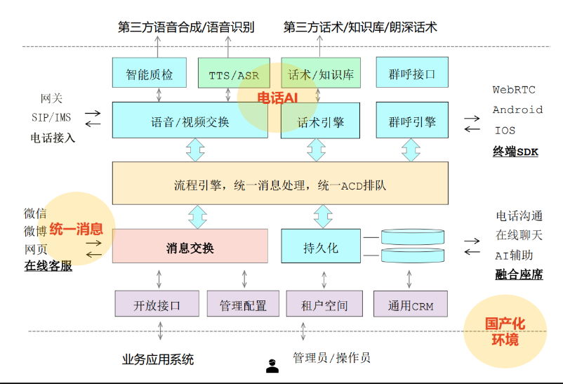 呼叫中心中间件的核心理念是“连接与封装”——它将复杂的底层通信技术和AI能力封装为标准化的服务,通过API接口开放给上层应用。集成商无需关心信令控制、媒体处理、协议转换,只需调用接口,即可快速构建智能呼叫中心。